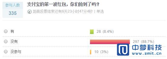 在凤凰科技6292位用户参与的调查问卷中,有将近75%的用户表示没有抢到红包,超过一半的用户表示不会继续参与到后续的抢红包活动,甚至有35%的用户表示会卸载支付宝。