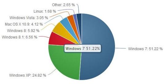 14年7月操作系统份额:Win8.x下滑、Win7逆势上扬