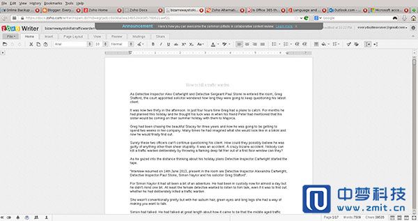 和Google Docs一样,Zoho也包含有文字处理工具,演示程序,电子表格程序和电子邮件。