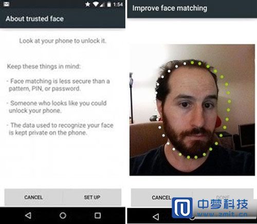点评:Android 5.0最新的trusted face,虽在生物识别技术上有了显著的提升,但在的人脸解锁,其实也是唯一的实用功能上,却反而不能做到完全解锁。trusted face就目前来说,只是一道额外的安全措施,识别通过之后,就会面临传统的滑动解锁、密码解锁、图案解锁界面—&mdash具体取决于你的安全设 置。这是因为Google认为人脸识别解锁的安全性较差,比不上传统方式,因此不能完全作为安全锁定方式,只能是个辅助而已。不知诸位对这样的安全措施, 而不是真正意义上的人脸解锁是否感冒,反正就现在的状态看,谷歌还是为后面的进一步技术研发,似乎留了一手?