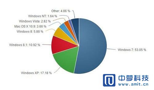 除了Windows 8.1的显着增长之外,另一条对微软来说当今重大消息便是 Windows XP的市场份额已显著下降。此迹象表明,大量Windows XP用户已最终迁移到新的操作系统。