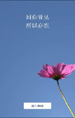 初次登陆新版微信,就能发现,全新改版界面是蓝天下的一朵花和八个字“因你看见 所以存在”。