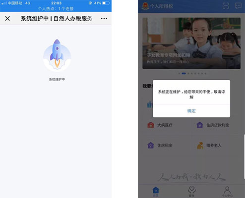 个人所得税APP(以下简称:个税APP)在元旦之前上线了,12月30日被爆有木马,现已证实误传,但国家税务总局还是将系统关闭了,因此元旦放假期间,是无法下载个税APP的,即使之前已经下载了个税APP,打开APP界面也是维护状态,无法进行业务办理和信息查看。所幸的是,今天节后上班第一天,打开个税APP已经是可用状态了,大家可以放心下载,办理业务了。