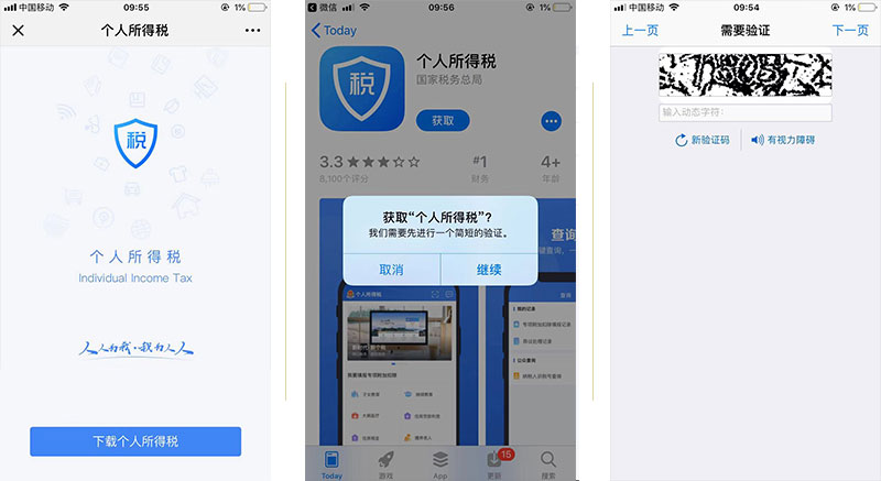 苹果手机在下载个税APP时会有一个动态码的验证操作,增加APP下载的安全性,按要求输入动态码即可。