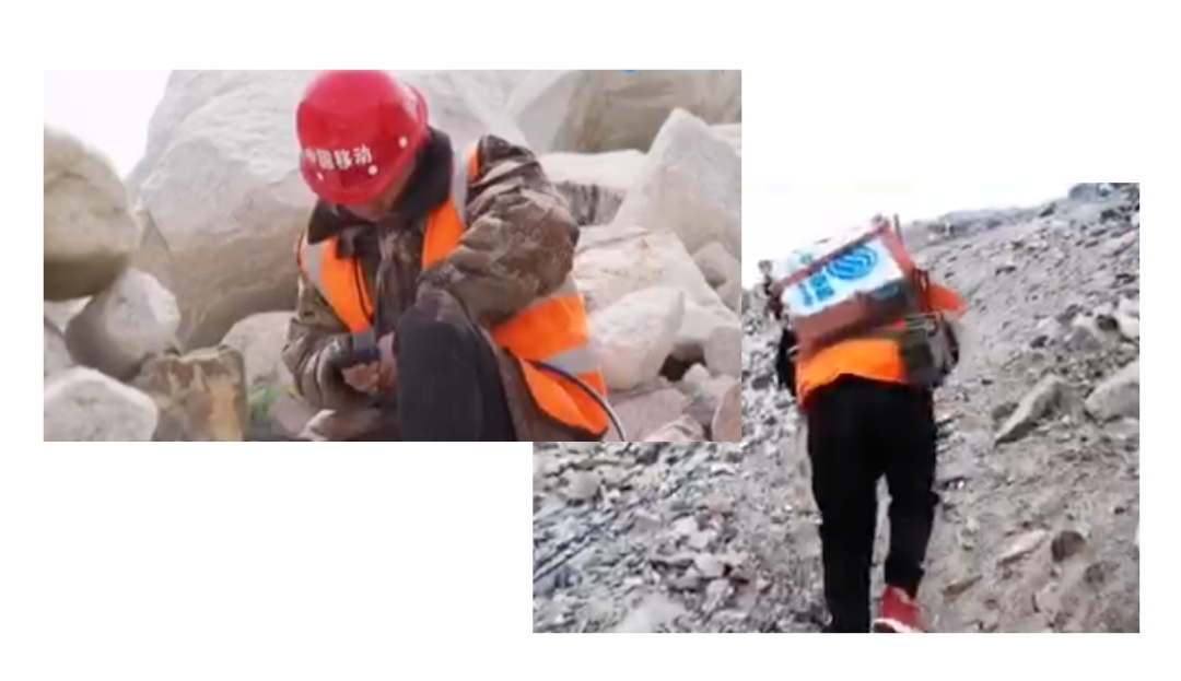 这就考验传输施工了。绒布寺到前进营之间的光缆拉远距离估计约25公里,每个站点需8芯,共需24芯光缆,而为了方便运输,长约3公里的光缆会被裁剪成1.5公里一段,再由人来肩抗到目的地,同时,这要求传输工程人员需在恶劣环境下现场多处、多点熔接光纤。