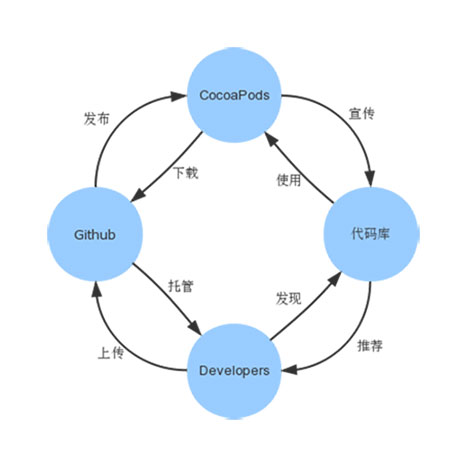 就这样,CocoaPods – Github – 第三方代码库 – 开发者,这四者形成了一个iOS开源的闭环,随着参与者的增多,变得越来越强大。