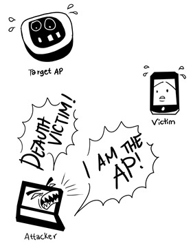 1. 首先解除攻击者与AP之间的认证关系。Wifiphisher会向目标AP连接的所有客户端持续发送大量解除认证的数据包。