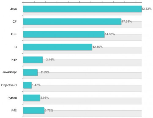 Java语言诞生已近20年,作为主流开发语言一直备受关注。本次调查中,42.82%的软件开发者表示Java是自己的第一编程语言,C#与C++紧随其后以17.33%、14.35%的占比位列第一编程语言的第二、三位。