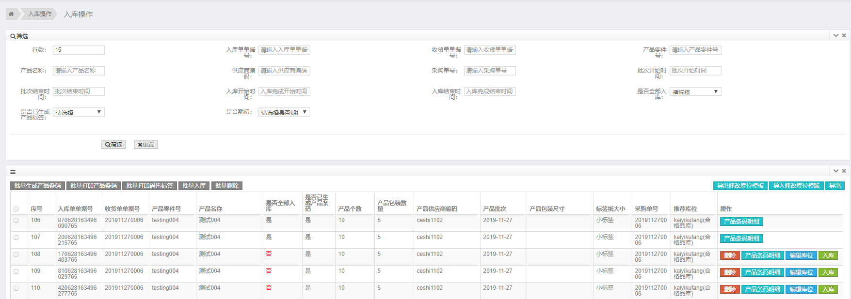 每个模块都具有查询功能,查询都是按照某些条件,如:产品标识,时间,状态等等来查询。