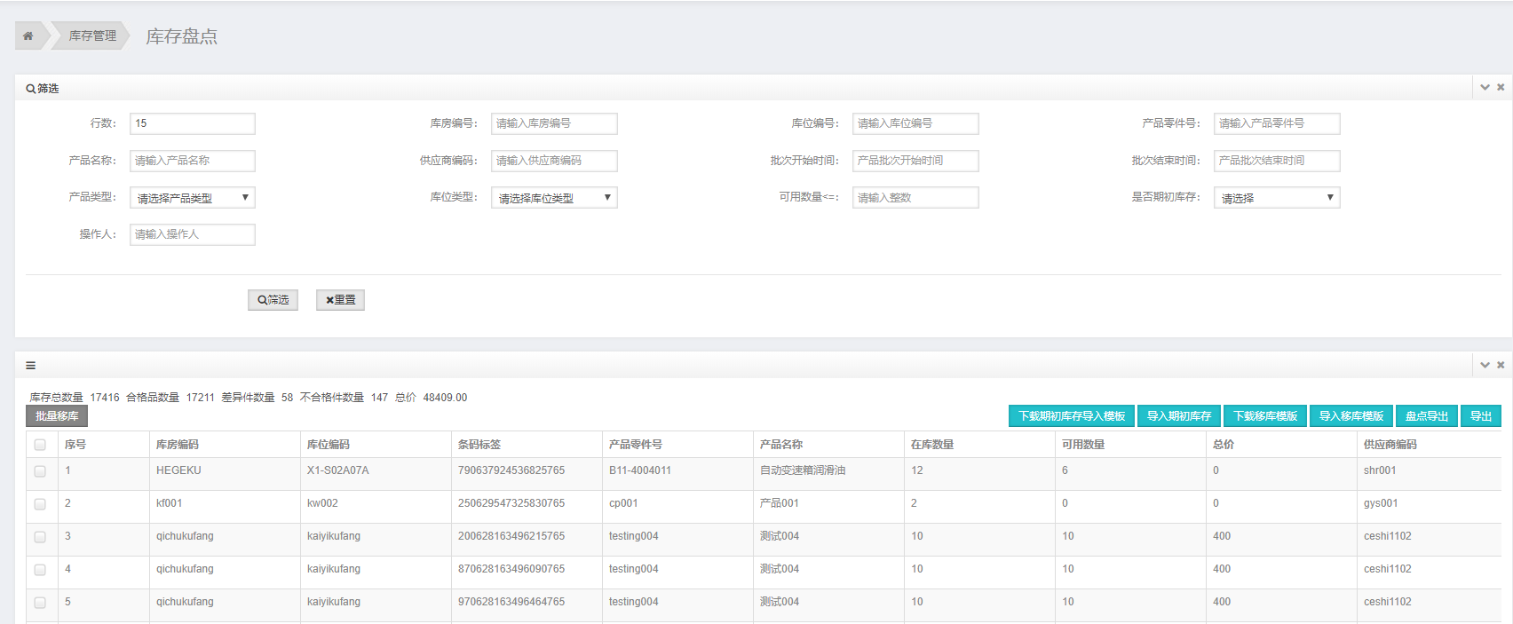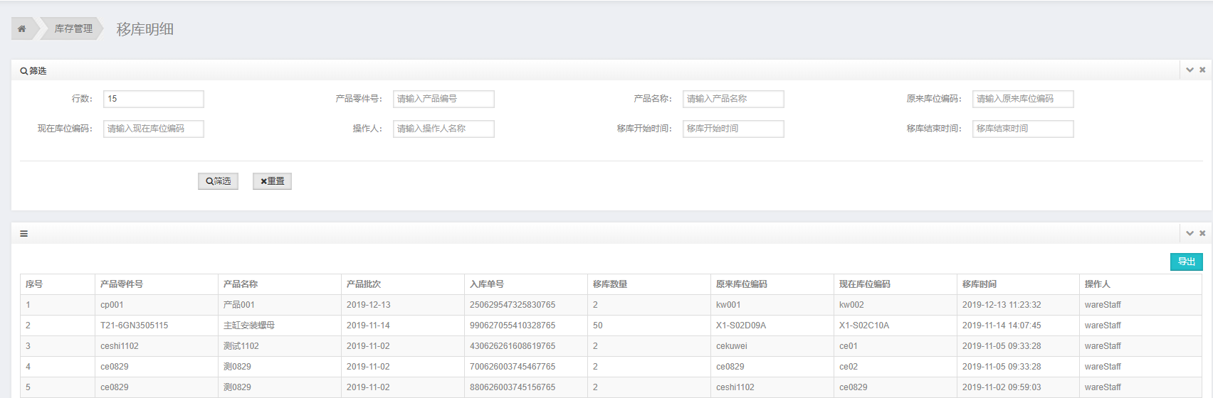 对于一些差异件或不合格件产品可以通过手持PDA终端进行移库操作,将对应产品转移到差异库和不合格库中进行区分,各功能和正常仓库一致。